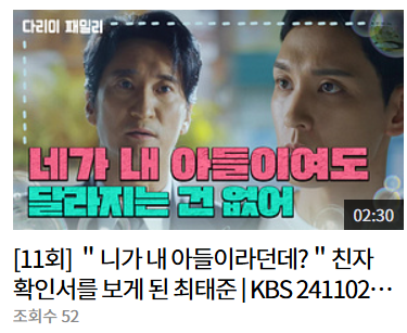 목차 👖다리미 패밀리 인물관계도12회 줄거리촬영지다리미 패밀리 11회에서는 지승돈과 차태웅이 부자간이라는 것에 충격을 받은 서강주의 모습이 방송되었습니다. 과연 강주는 앞으로 태웅