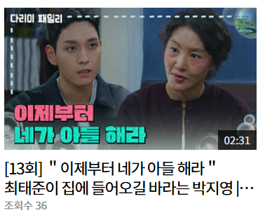 한눈에 보는 오늘 : 방송/가요 - 뉴스 : KBS 방송 캡처배우 김혜은이 KBS2 주말드라마 ‘다리미 패밀리’(연출 성준해 서용수, 극본 서숙향)에서 잃어버린 돈을 두고 김정현과 ‘환장’의 모자(母子