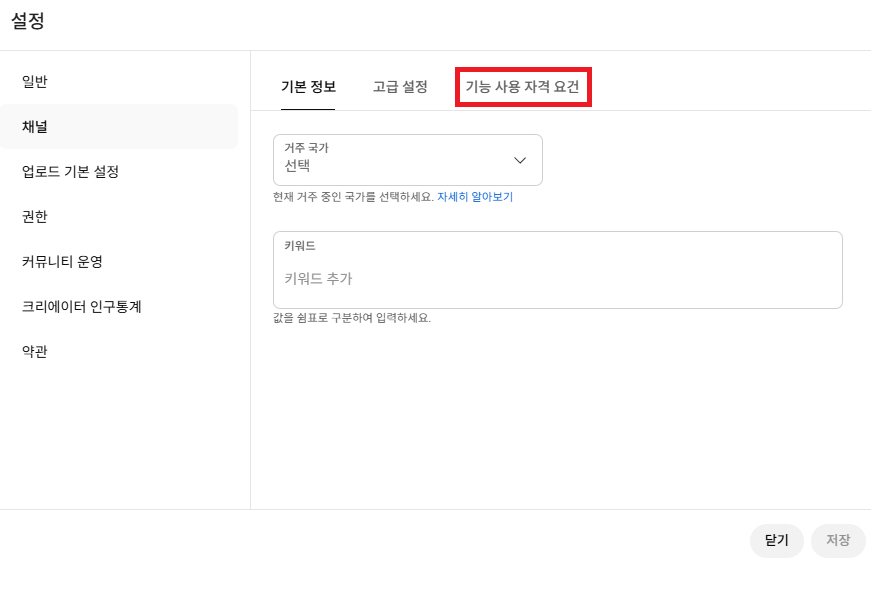 채널 → 기능 사용 자격 요건